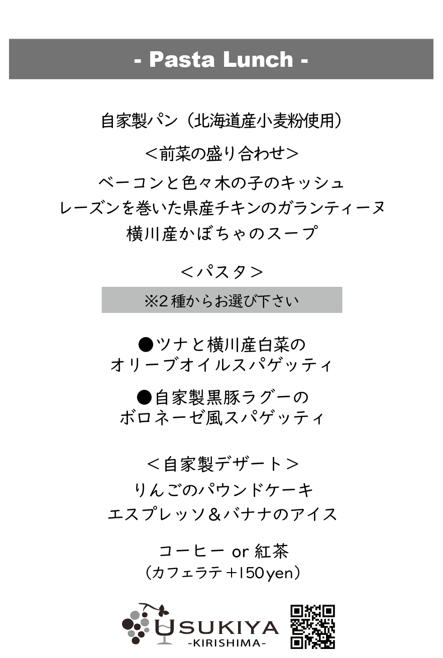 ある日の「USUKIYA Lunch」のメニュー